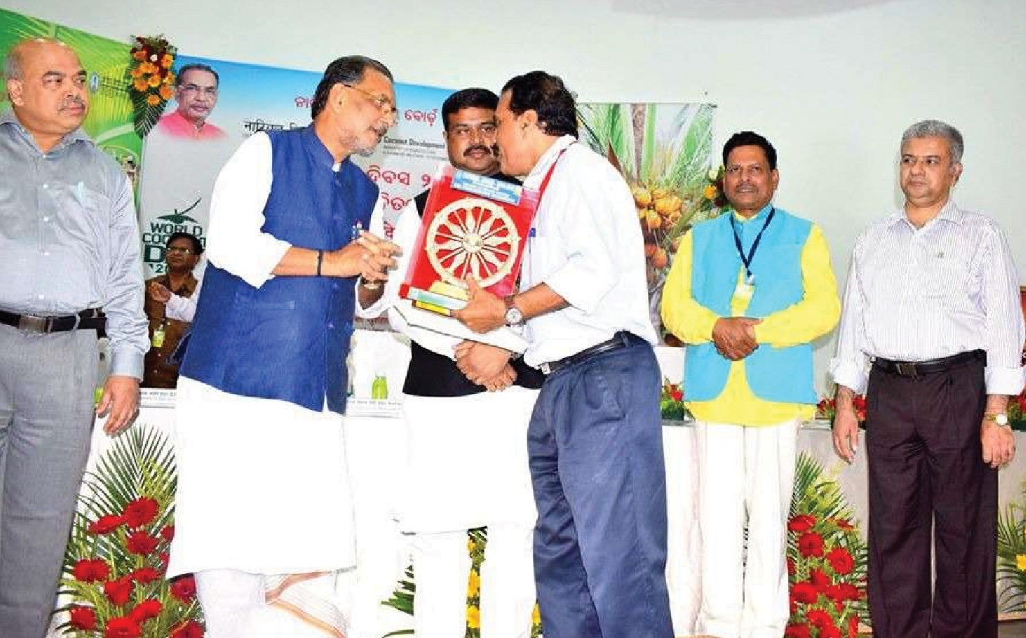 Receiving the National Award for Best Extension Worker, instituted by the Coconut Development Board from Mr Radha Mohan Singh, the then Union Minister for Agriculture, Government of India, during the World Coconut Day Celebrations organised by the Coconut Development Board on 2nd September 2016 at Bhubaneswar, Odisha