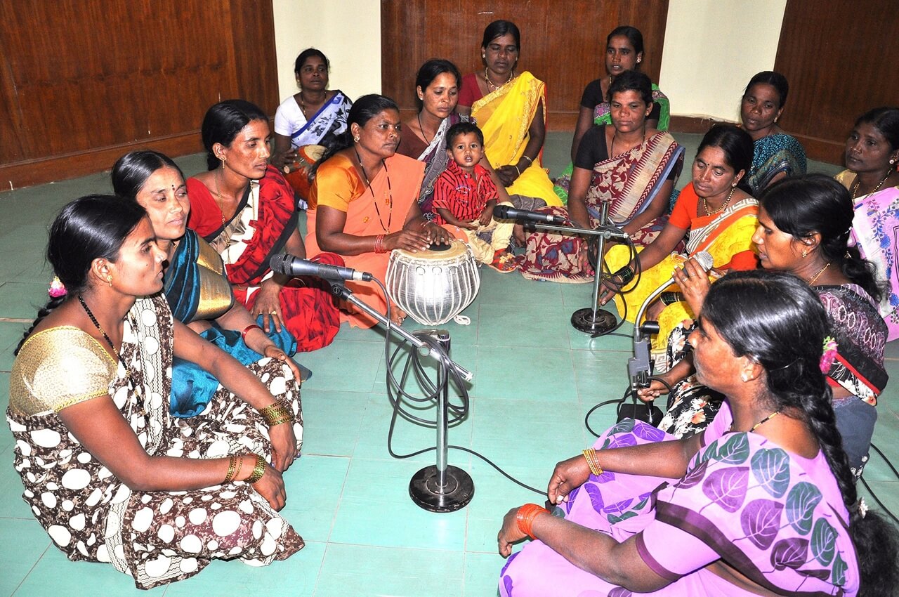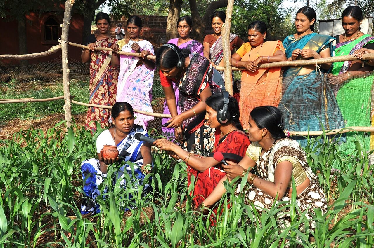 At Sangham Radio, everything starts from the community. Village women are involved at every stage deciding programmes, producing them, and presenting them.