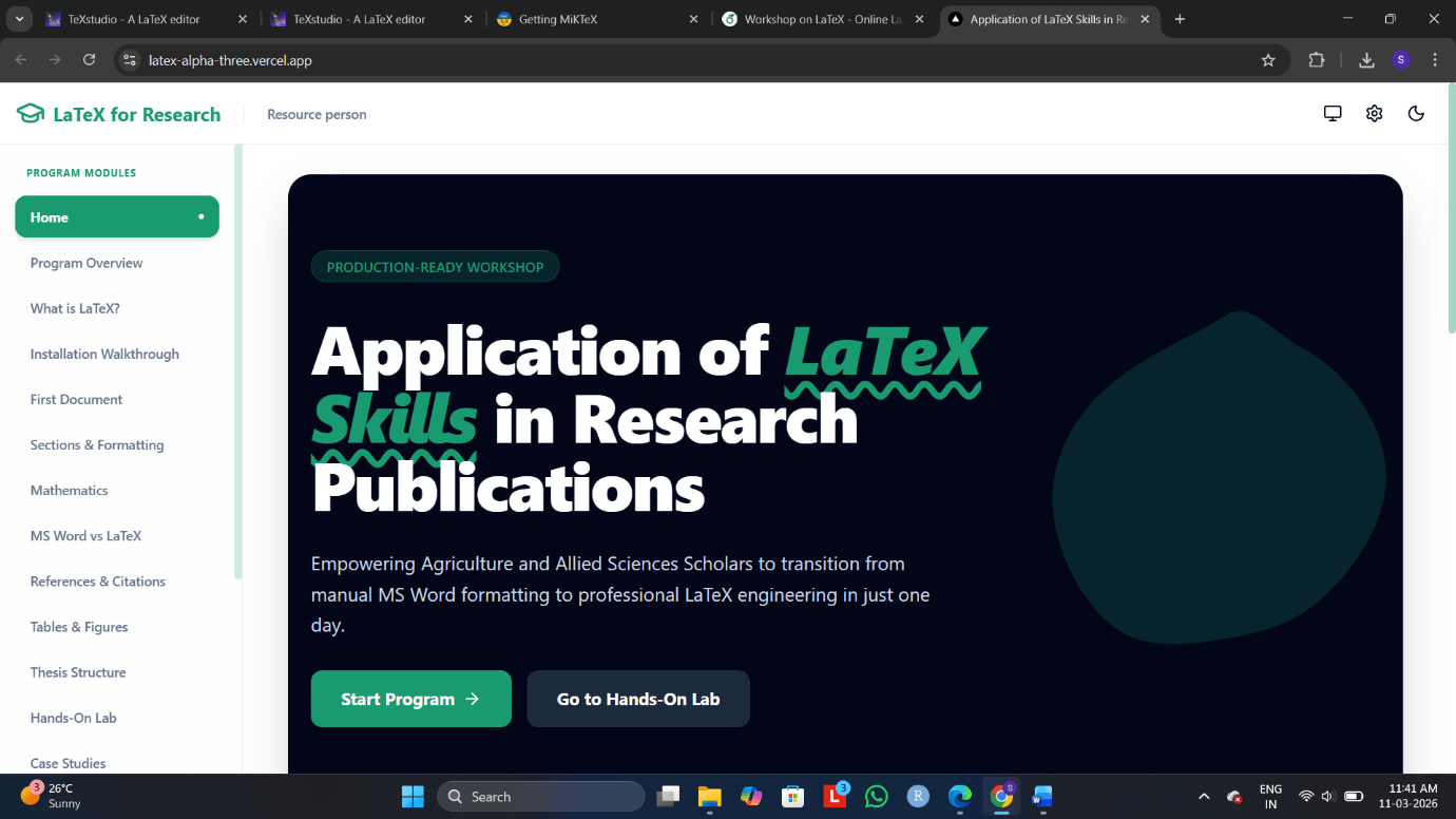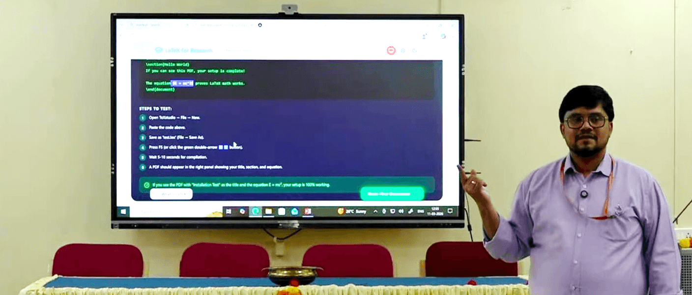 Overall, participating in this workshop was a highly enriching experience for me. It provided valuable insights into how LaTeX can be used as a powerful tool for scientific writing and academic documentation. The workshop strengthened my understanding of how structured writing systems can improve the clarity, efficiency and professionalism of research publications. For students and early-career researchers, acquiring LaTeX skills can significantly enhance their ability to prepare high-quality manuscripts, theses, presentations, and academic resumes.