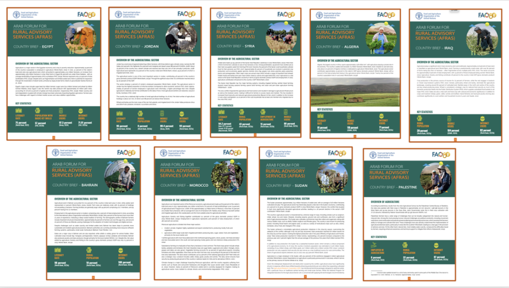 As part of AFRAS’s ongoing efforts to document and strengthen extension and rural advisory services (RAS) across the region, AFRAS has published nine Country Profile Briefs (Algeria, Bahrain, Egypt, Iraq, Jordan, Morocco, Palestine, Sudan and Syria) . These briefs highlight the institutional frameworks, key actors, and innovations shaping agricultural extension systems across the Near East and North Africa.